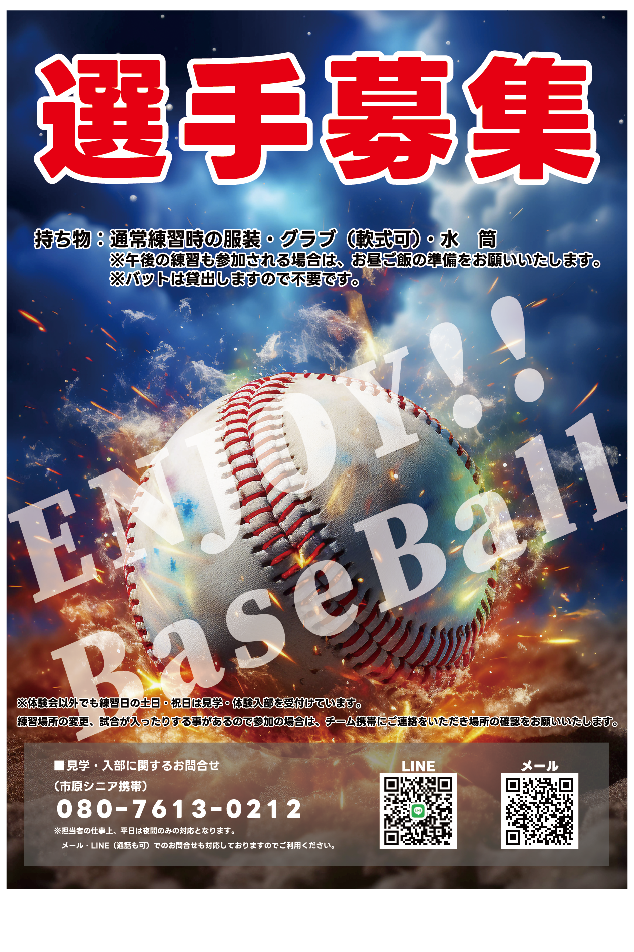 市原リトルシニアでは、選手を募集しています。